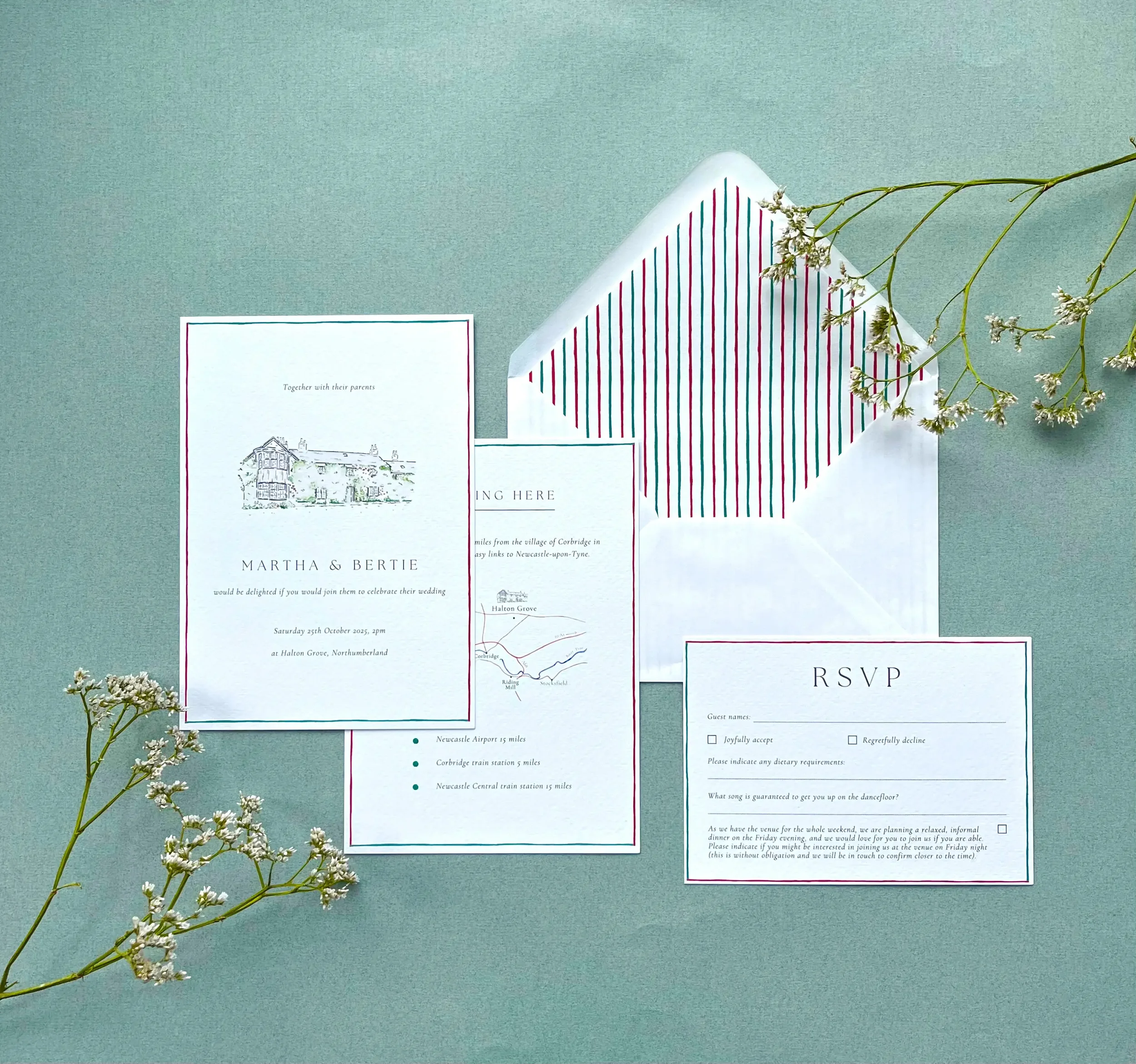 Bespoke, hand-illustrated wedding stationery.