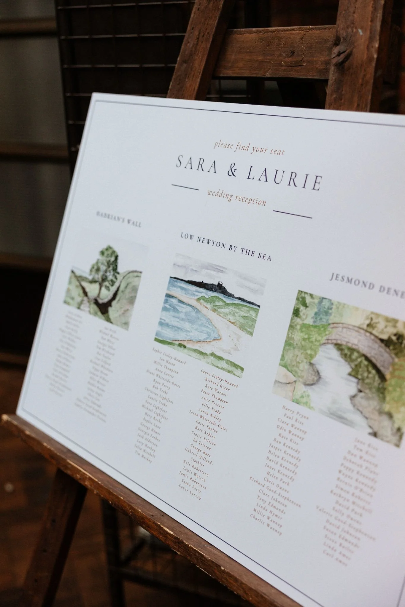 A truly personal journey into the couple’s story through a fully bespoke wedding suite, including invitation and on-the-day stationery.
