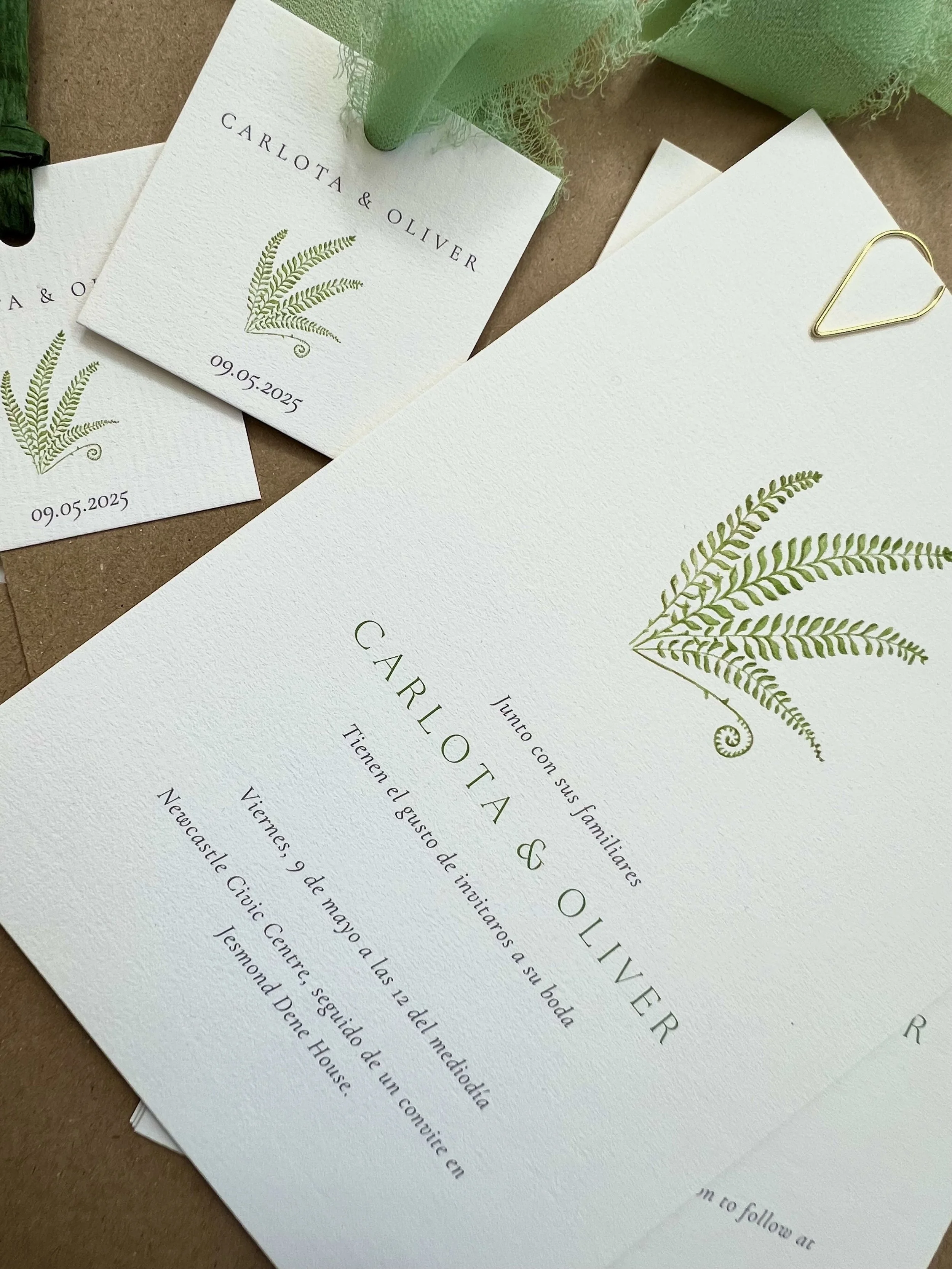 Bespoke wedding stationery inspired by mystical ferns and wildflowers.